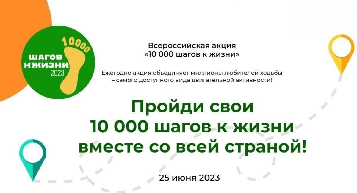 25 июня пройдет Всероссийская акция “10000 шагов к жизни”, приуроченная ко Дню молодежи. Главная цель – пропаганда ценностей здорового образа жизни, повышение физической активности, оздоровление.