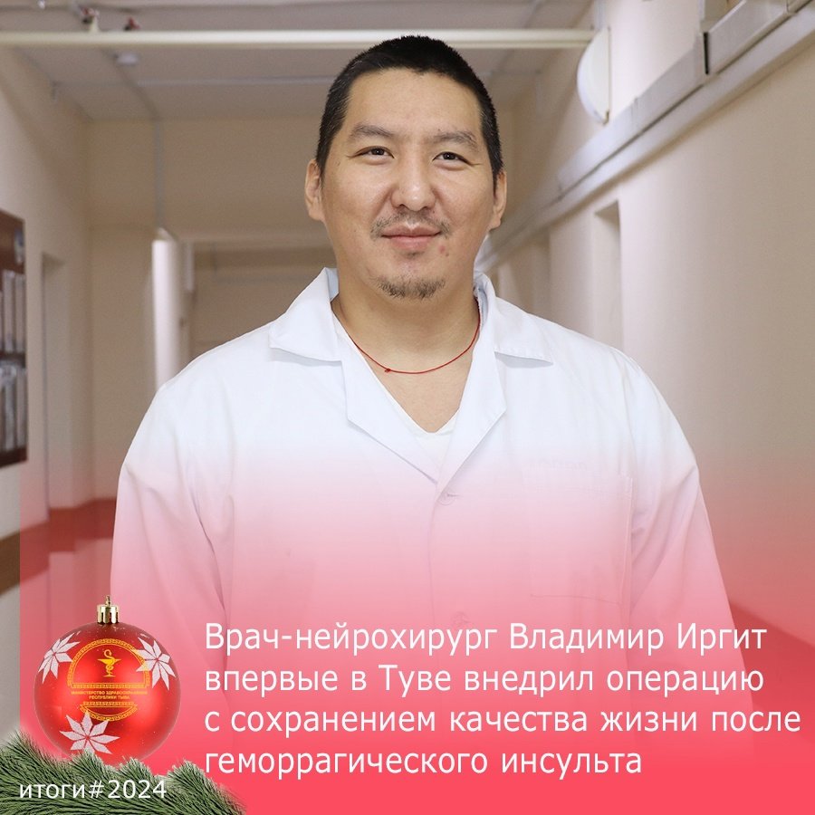 В ряду значимых медицинских внедрений 2024 года в Туве – эндоваскулярная суперселективная химическая ангиопластика вазоспазма сосудов головного мозга пациенту с геморрагическим инсультом. Операцию выполнил заведующий нейрохирургическим отделением Республиканской больницы №1, врач-нейрохирург Владимир Владимирович Иргит.