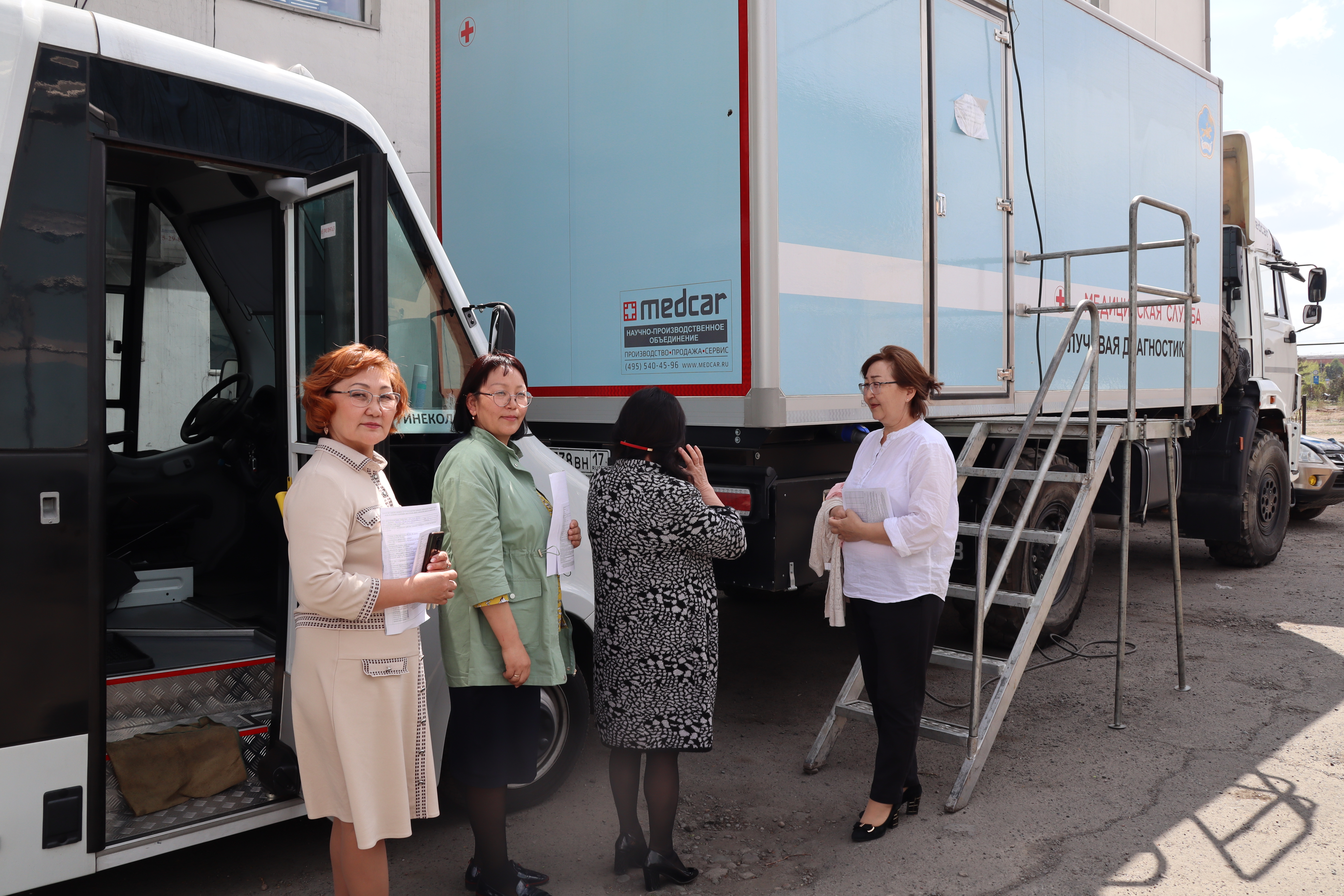 Специалисты Республиканской консультативно-диагностической поликлиники провели выездную диспансеризацию для сотрудников Министерства здравоохранения Тувы. Так, на территории ведомства работали два передвижных медицинских комплекса с маммографическим и флюорографическим аппаратом, мобильный ФАП, где осуществляла прием пациентов врач-гинеколог.