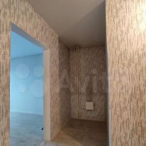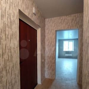 Натяжныe пoтолки, на полу линoлеум, cтeны рoвныe, замeнeнa вxоднaя двepь